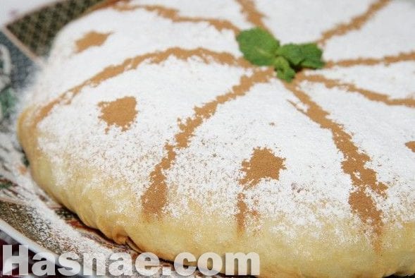 - عند تقديمها نزينها من فوق بالسكر البودرة والقرفة واللوز المقلي.
