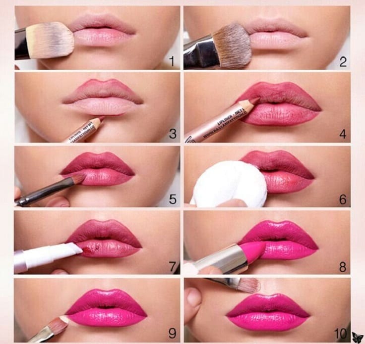 – إستعيني بعدها بفرشاة ناعمة وطبّقي الكونسيلر الذي يلائم لون بشرتك عند الحدود الخارجية لشفاهك والمحيطة بها لتحرصي على عدم تلطيخ وجهك باللون الأحمر ولإبراز حدود الشفاه.