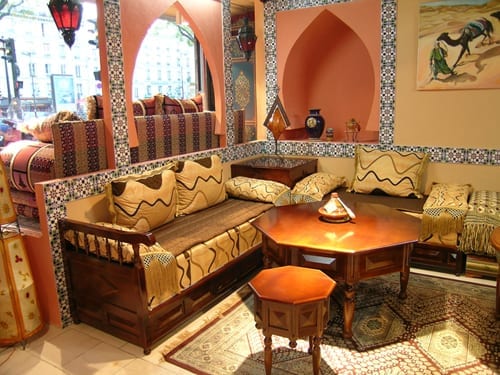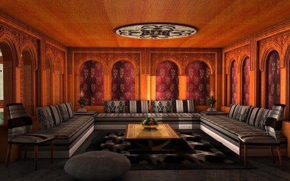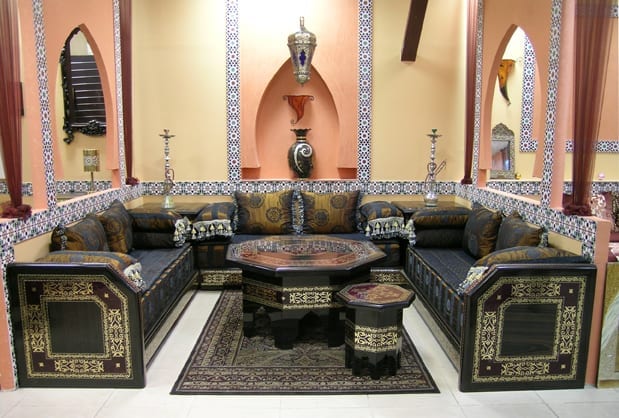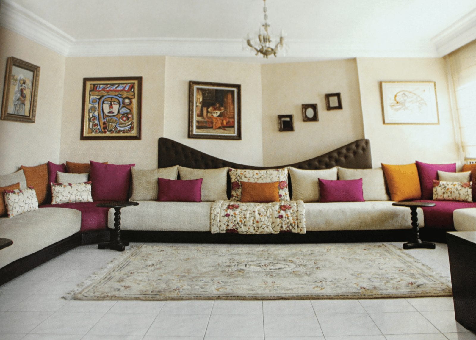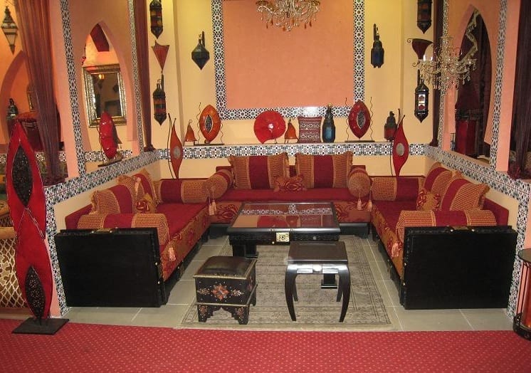 Le salon marocain se place principalement dans une pièce lumineuse est spacieuse, pour dessiner les traits de la culture marocaine et pour être adapté aux besoins des invités qui sont généralement nombreux. Un salon marocain se compose de grands canapés (de 2 jusqu’à 5) munis de plusieurs oreillers,