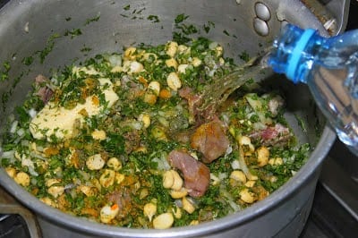 – أسكبي الماء الساخن وغطّي القدر.و أتركي المزيج على النار حوالى الساعة إلى الساعة والنصف حتى تنضج المكونات تماماً.