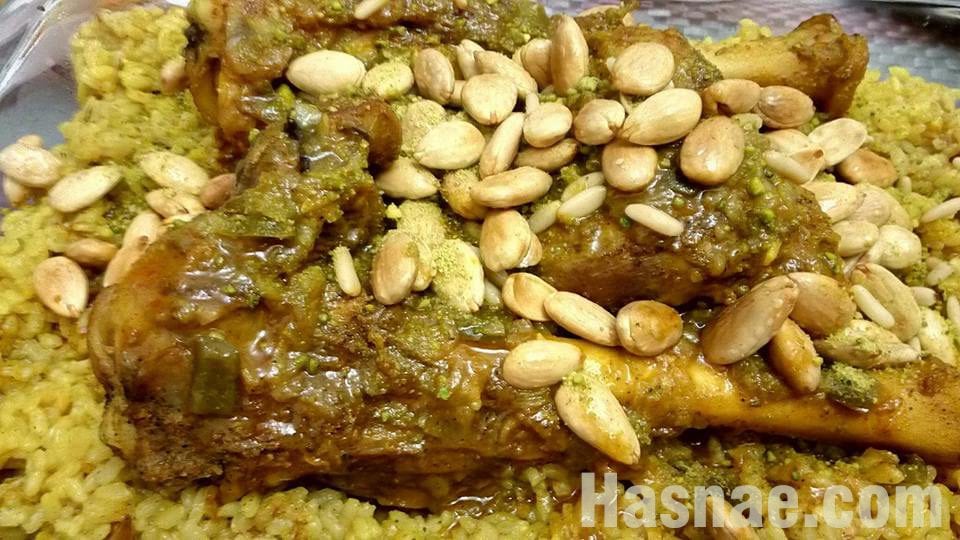 - نذيب ملعقةزبدة في قدر، نضع اللحم ثم البصل و الثوم، نقلب قليلا ثم نضيف ملعقة ملح، ملعقة قرفة، ملعقة كركم، ملعقة هيل، القرنفل و ورق الغار، نضيف الفلفل الاخضر بعد تقطيعه قطعا صغيرة. نقلب إلى أن يتغير لون اللحم ثم نضيف عود القرفة و حبة اللومي و نصب الماء المغلي ثم نغطي و نتركه يستوي على نار هادءة لمدة ساعتين.